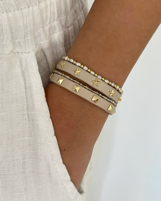LEATHER STAR STUD BRACELET MINI VANILLA