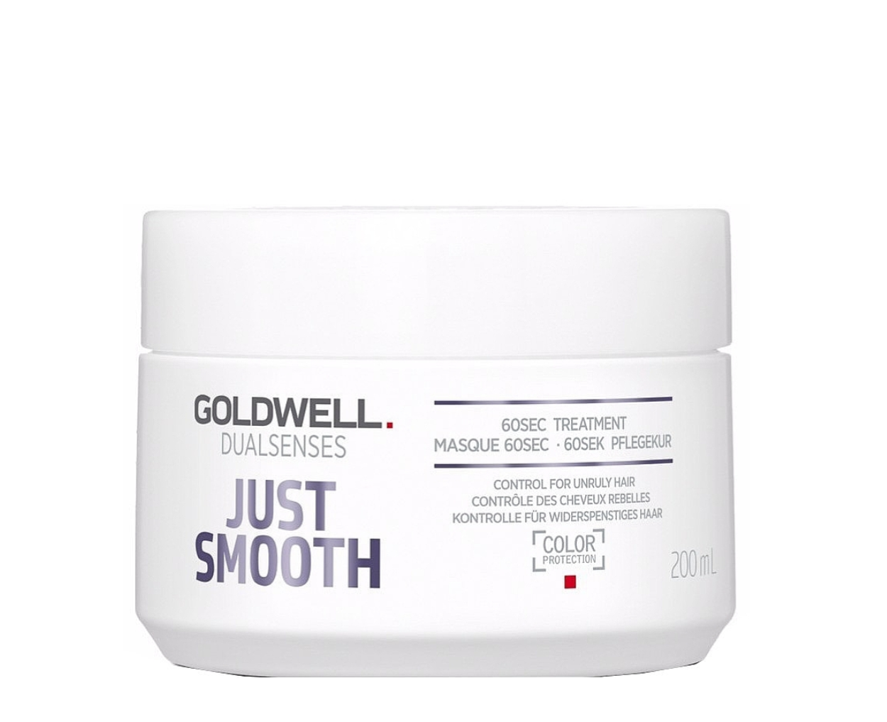 Goldwell Dualsenses Just Smooth 60sec Treatment er perfekt for deg med frizzy hår! På bare 60 sekunder blir håret bygget opp på ny, og håret vil få masse pleie og glød. Hårkuren inneholder glattende ingredienser som reduserer krusete hår og »fly-aways».
