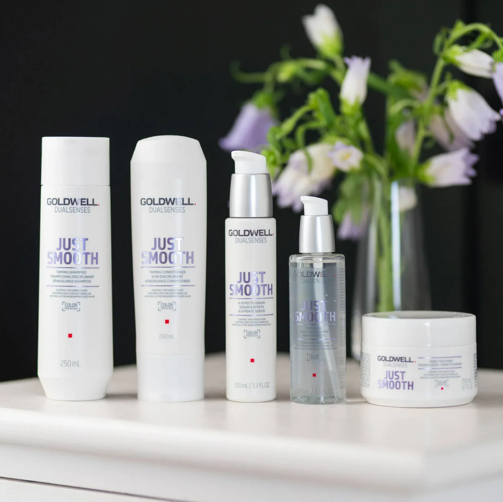 Goldwell Just Smooth Taming Conditioner er en balsam som inneholder glattende ingredienser som gir deg kontroll over uregjerlig hår, frizz og fly-aways.