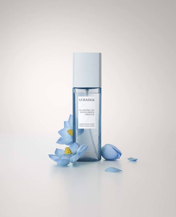 Liquid Cuticle Filler er en varmeaktivert spray som gir en intens og langvarig strukturell gjenoppbygging av håret. Sprayen gjenoppbygger og optimaliserer håroverflaten, for en langvarig strukturell gjenoppbygging av skjellaget og et hår som ser sunt ut med naturlig glans. Håret blir sterkere, mer livfullt og mer motstandsdyktig mot daglige stressfaktorer. Med varmebeskyttelse. Den har en 100 % vegansk formel og er beriket med Biomimetic Silk og blå lotus estrakt.