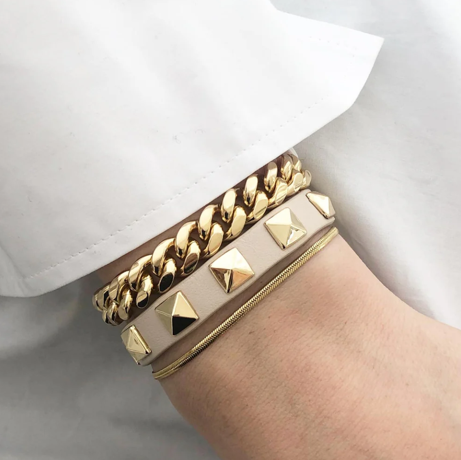 LEATHER STUD BRACELET VANILLA